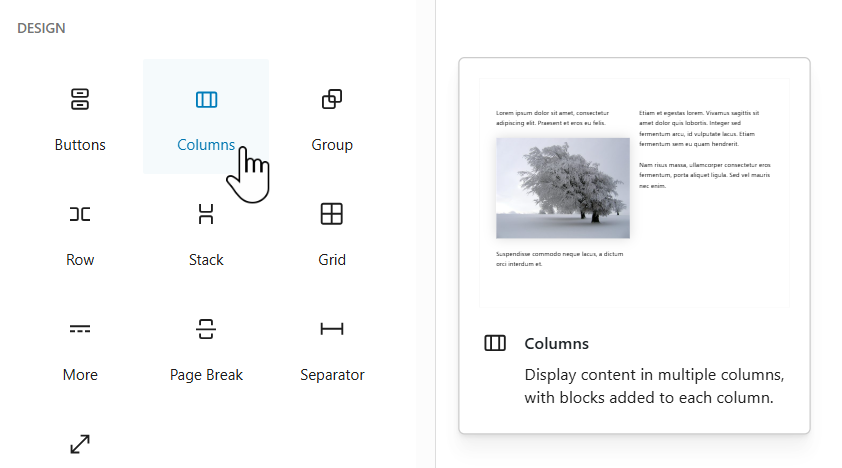 ► In sidebar scroll down to DESIGN and click the Columns icon.