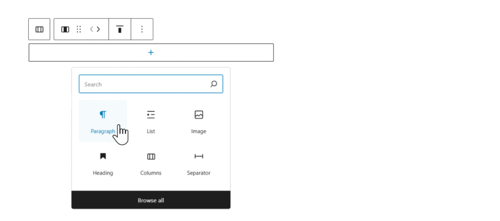 ► On a new line click the Add block icon (plus-sign on black square).