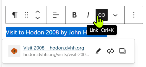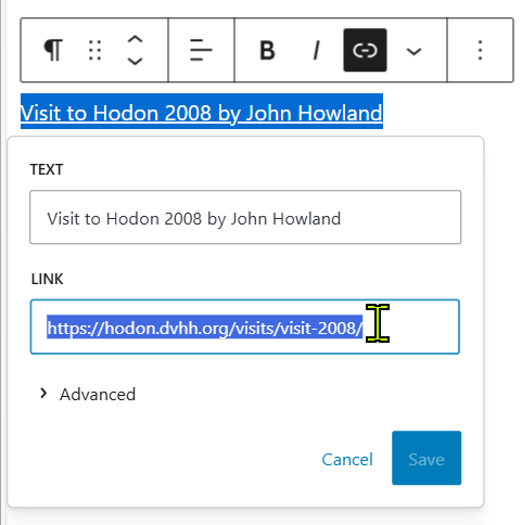 In the new popup window enter the new link URL. It is easiest to open the destination page in a new tab. Then copy the URL in the address bar.